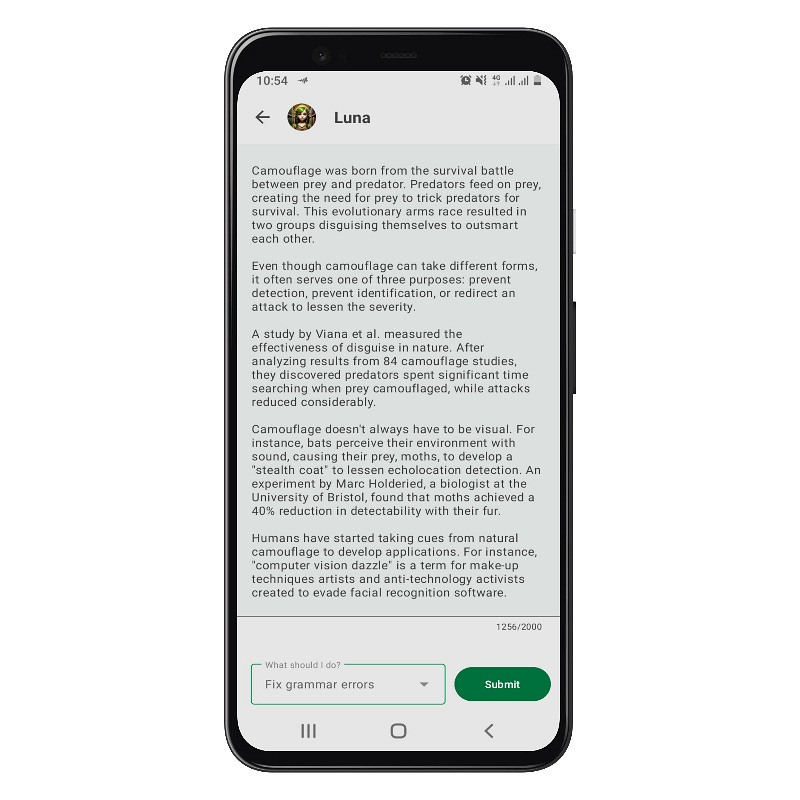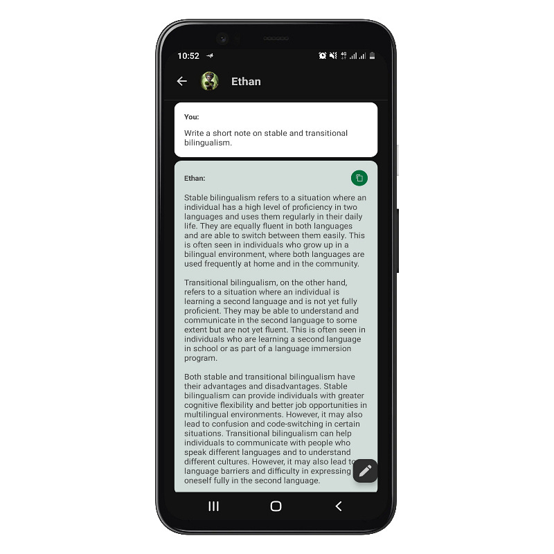 The app features an AI-powered writing tool that can help you generate high-quality essays and articles on any topic in seconds.